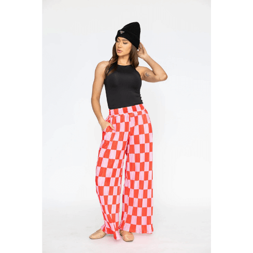 Designed to stand out while feeling unbelievably comfortable. These checkered plisse pants feature a silky-soft, flowy fabric with plenty of stretch and a comfortable elastic waistband. True to size and easy to wear, they move with you and elevate any outfit without sacrificing comfort.