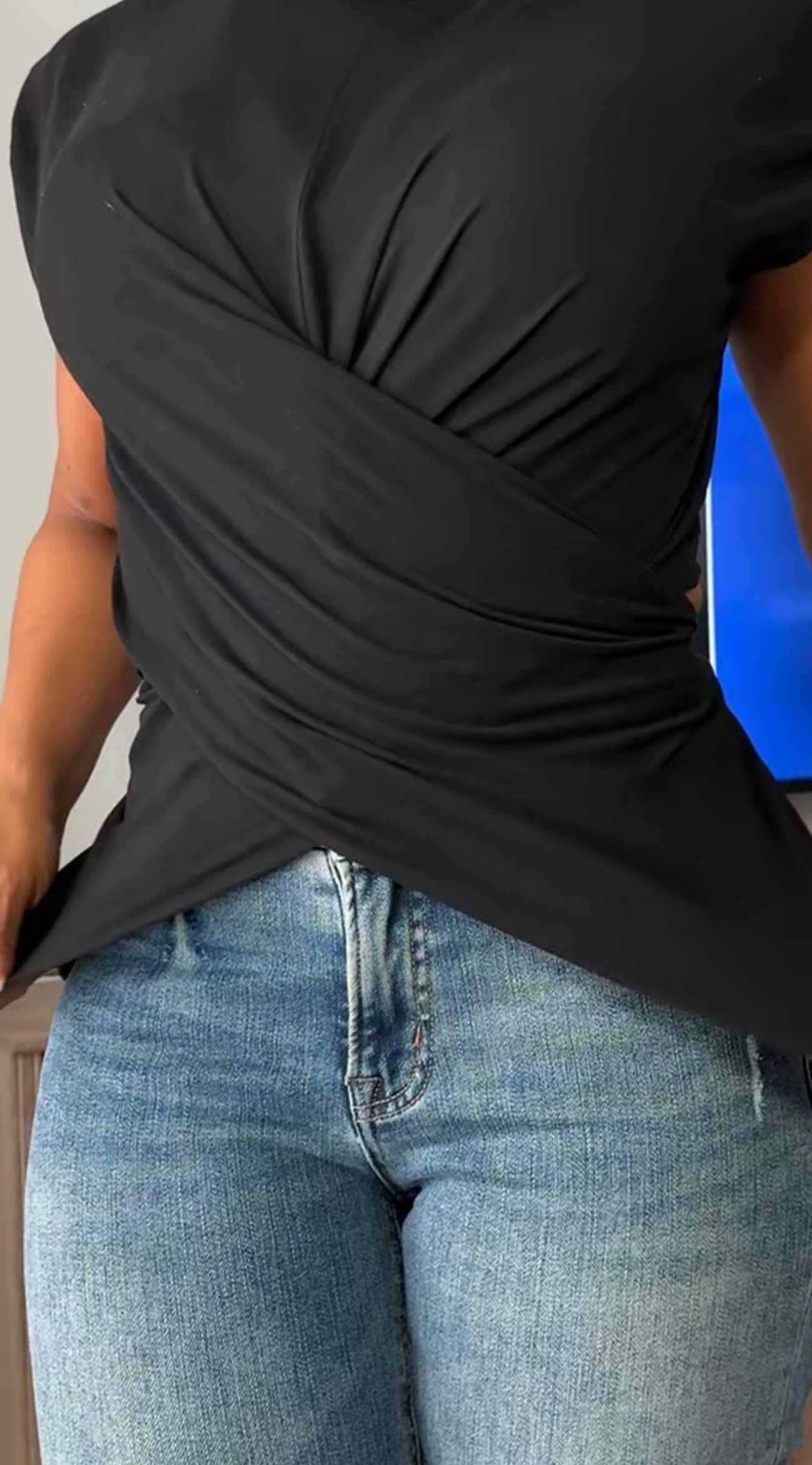 A fresh take on your everyday tee. This soft knit top features a relaxed drop-shoulder silhouette and a modern asymmetrical hem for an easy, lived-in feel. The crisscross back with adjustable tie adds an unexpected touch—equal parts effortless and elevated. Lightweight and versatile, it’s the perfect layer for spring days and cool fall nights.