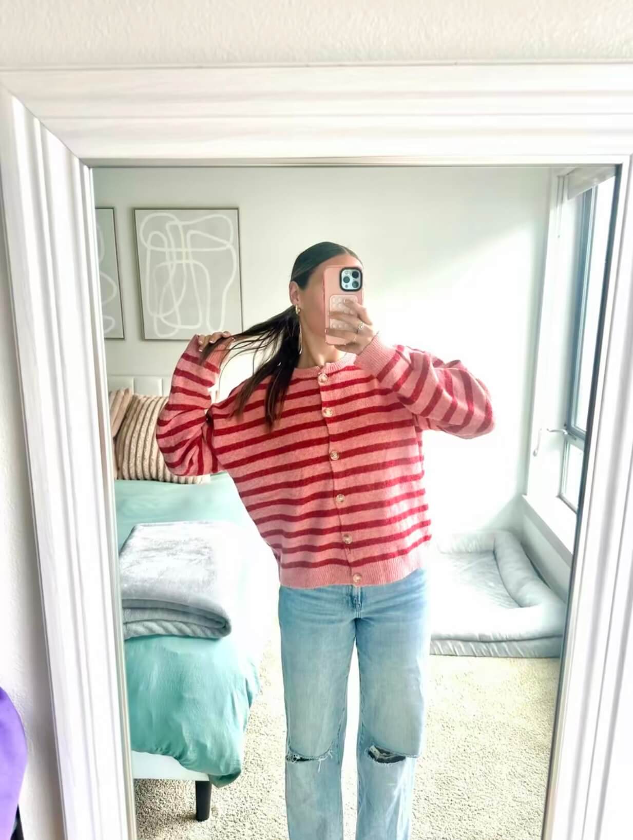 An easy layer you’ll reach for again and again. This vintage-inspired striped cardigan features a soft knit feel and a relaxed, flattering fit—perfect for casual days, shopping trips, or cozy date nights. Designed to transition effortlessly through spring, autumn, and winter.