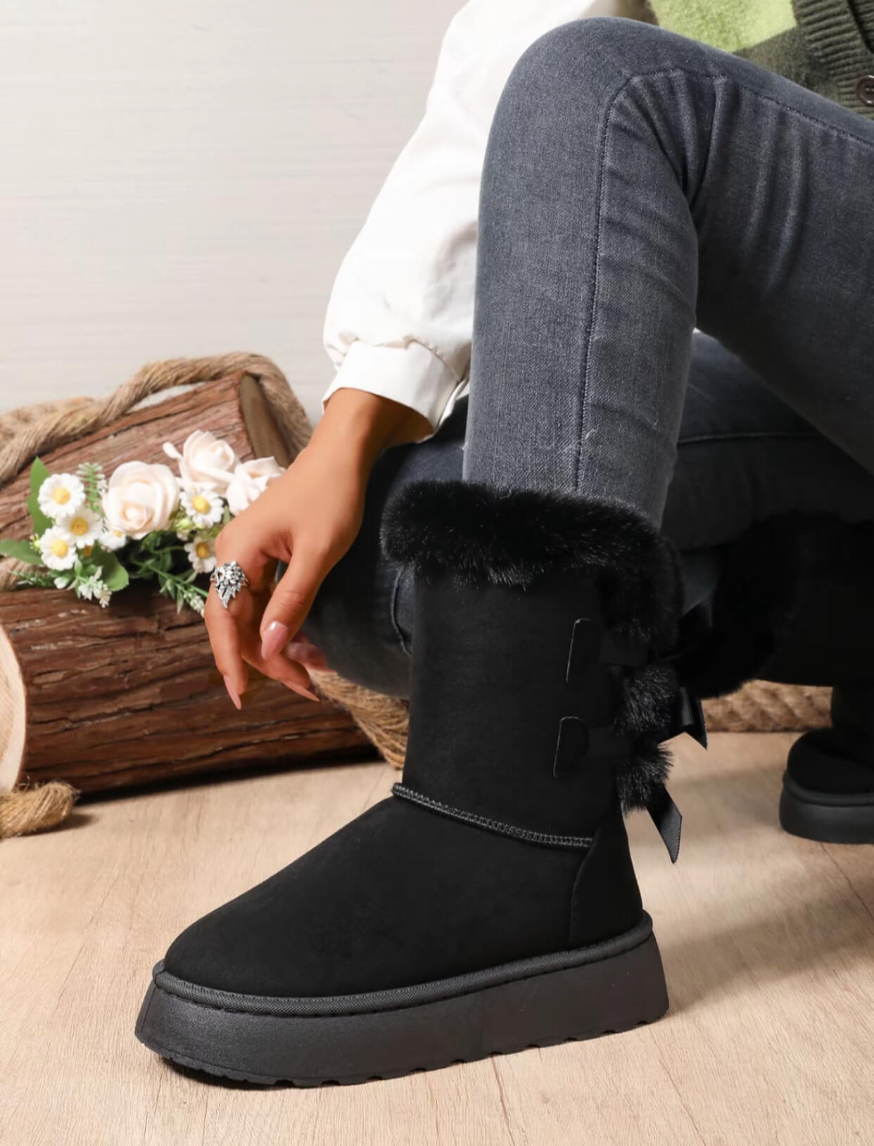 Cold-weather cute meets all-day comfort. These bowknot winter boots feature a plush fleece lining, a thick supportive sole, and a cozy mid-calf height to help keep you warm through fall and winter. Easy to style with leggings, jeans, or a long coat—your go-to pair for chilly days.